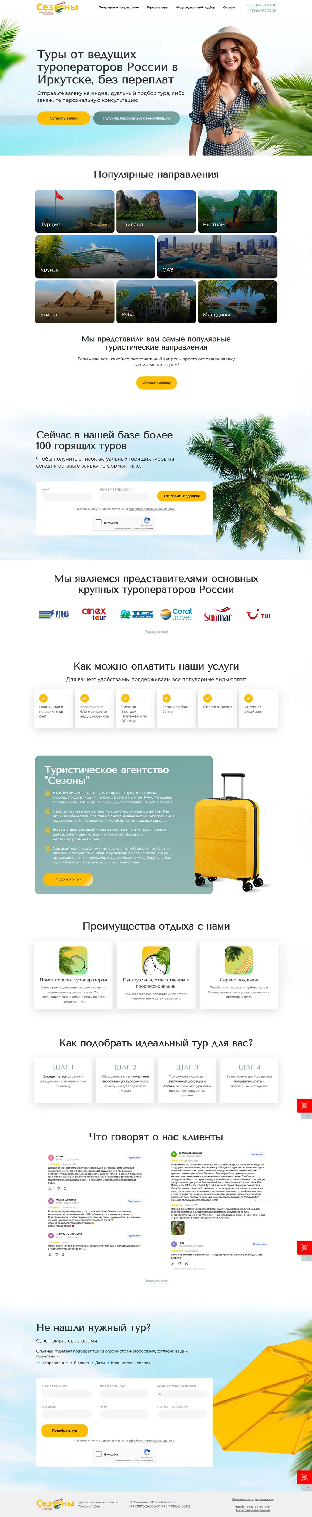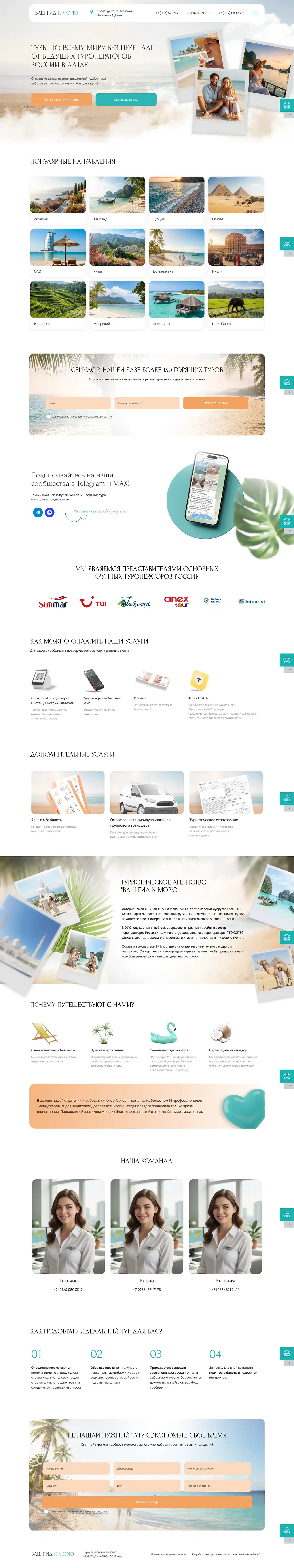 А почему так происходит? Потому что красивый сайт и продающий сайт - это не одно и то же. Мы часто видим супер красивые, навороченные и очень перегруженные сайты, с онлайн-чатами, квизами, выгрузками из турвизора, сделанные сильными дизайнерами и никакими маркетологами, отсюда и результат - мало заявок. Наше решение прошло огонь, воду и медные трубы и постоянно дорабатывается потому что прямо сейчас оно приносит более 2 000 заявок на туры в месяц в разных городах России.
